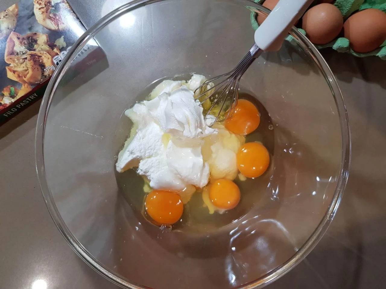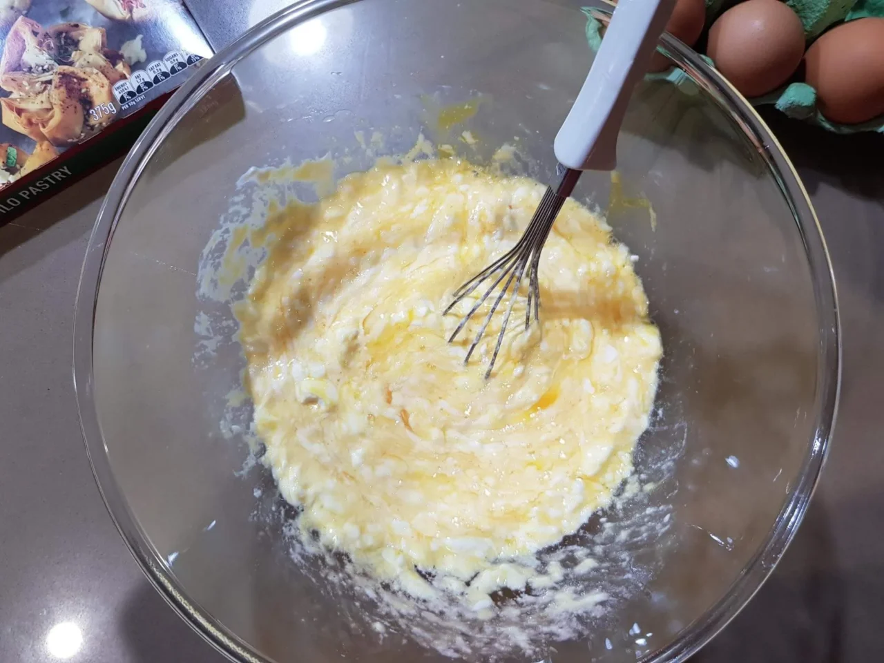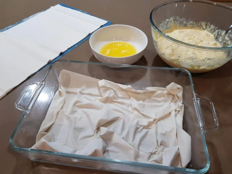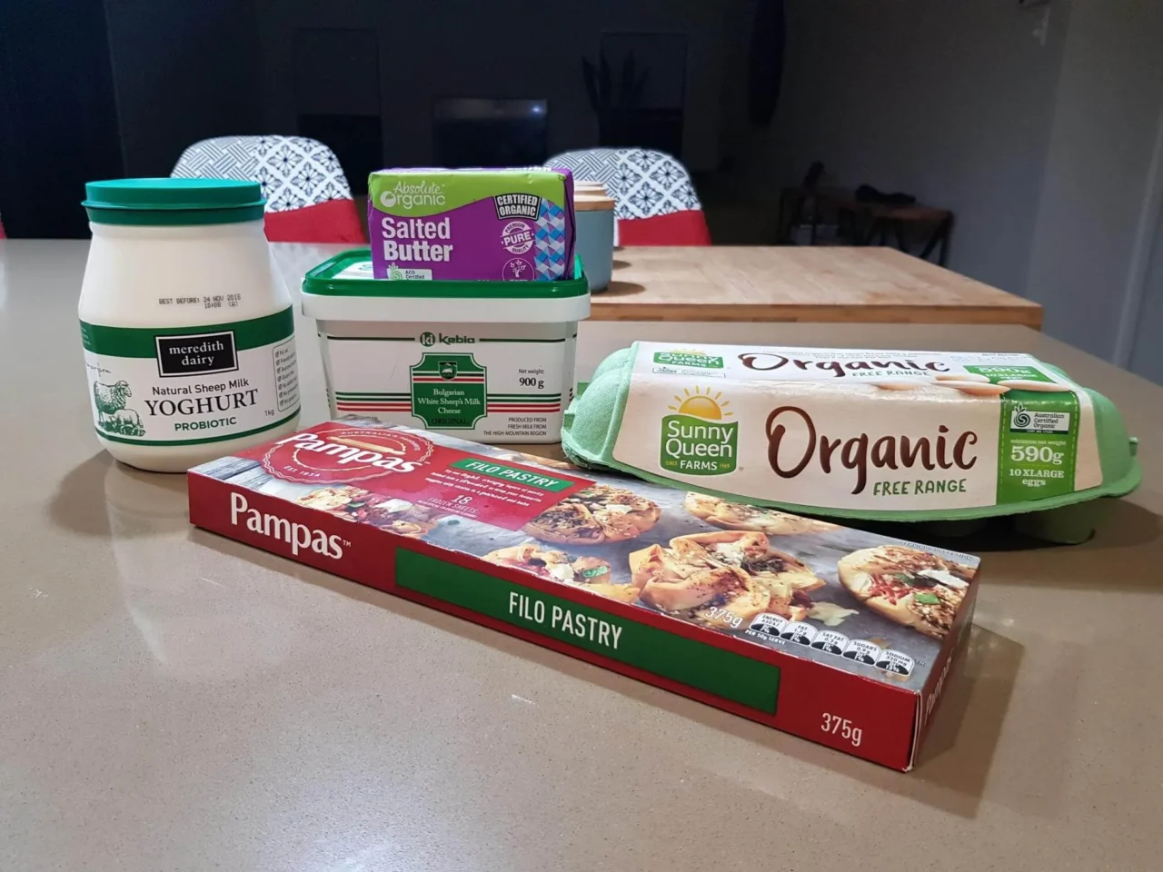5. Coat the dish with a little butter and get 3 sheets of filo and cover the bottom. Don’t need to be perfect!