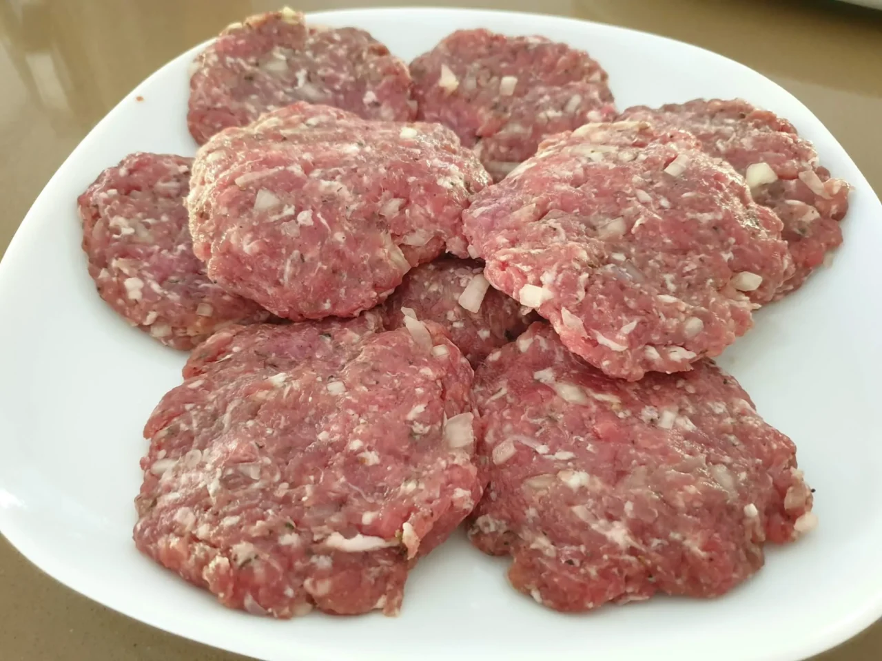 3. Make the meatballs about the size of your palm and flatten them to about 1 cm thick.