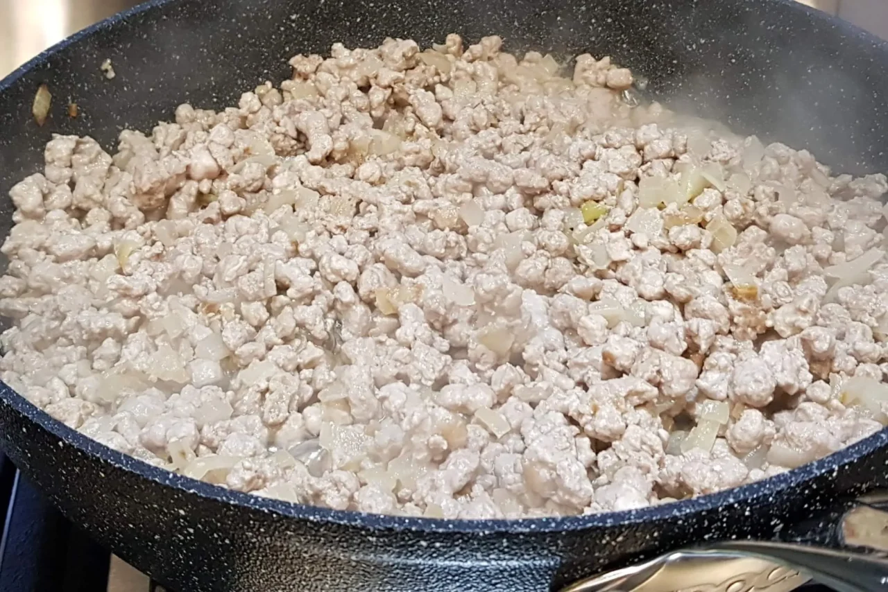 3. Put the mince in and brown until cooked stirring often. Put to the side.
