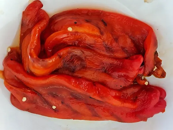 - Once the capsicums are grilled, put them in a plastic bag to rest.